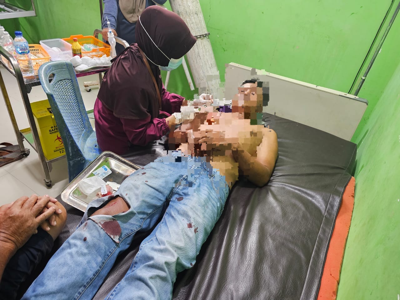 Korban lalu dibawa ke Puskesmas Binuang untuk mendapatkan perawatan medis. Ia mengalami luka terbuka di dada, luka robek di paha kanan, luka pada jari kelingking kanan, serta lecet di bibir bagian atas.