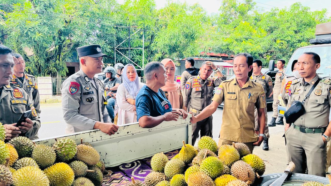 Sosialisasi tersebut ditujukan kepada para penjual durian musiman yang berjualan di atas trotoar. Petugas mengingatkan bahwa trotoar adalah fasilitas umum untuk pejalan kaki, bukan area berjualan.