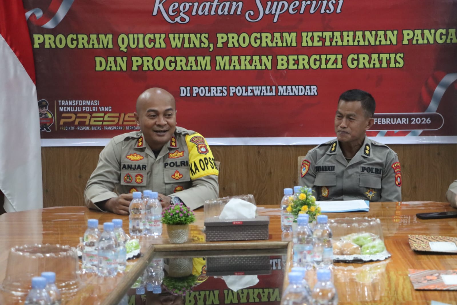 POLMAN – Tim Supervisi Polda Sulawesi Barat melakukan evaluasi pelaksanaan Program Quick Wins Presisi, Program Ketahanan Pangan, serta Program Makan Bergizi Gratis di Polres Polewali Mandar (Polman), Kamis (12/02/2026).