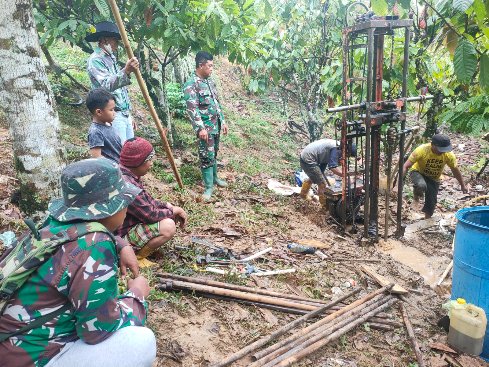 Melalui program Manunggal Air, Satgas TMMD membangun sumur bor sedalam 17 meter di Desa Bulo, Kecamatan Bulo, Kabupaten Polewali Mandar.