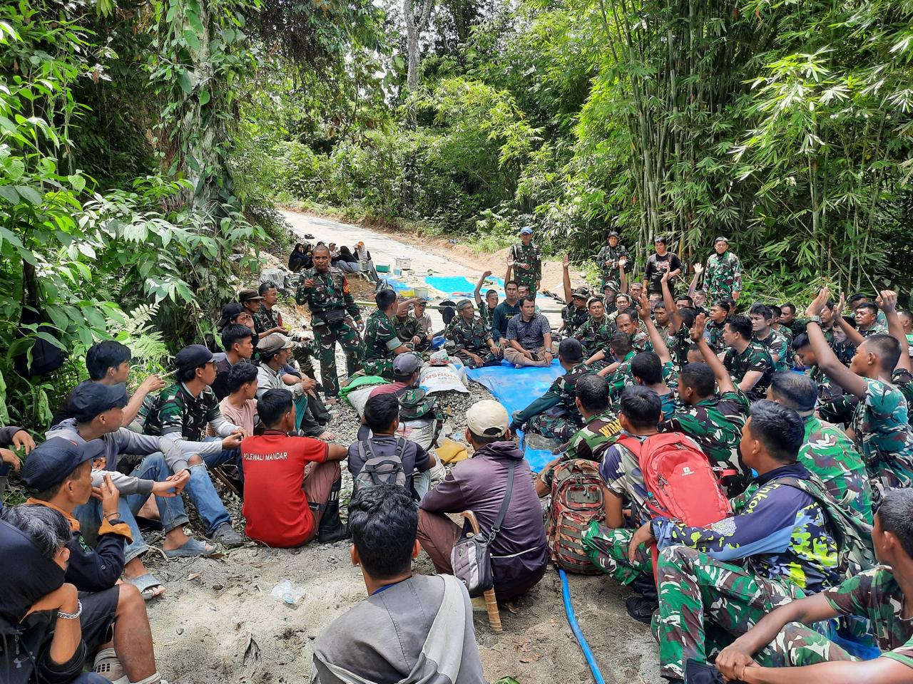 Di tengah kegiatan TMMD, prajurit TNI dan masyarakat tampak duduk bersama tanpa sekat, berbincang dan berdiskusi setelah menyelesaikan berbagai pekerjaan pembangunan yang menjadi sasaran program tersebut.