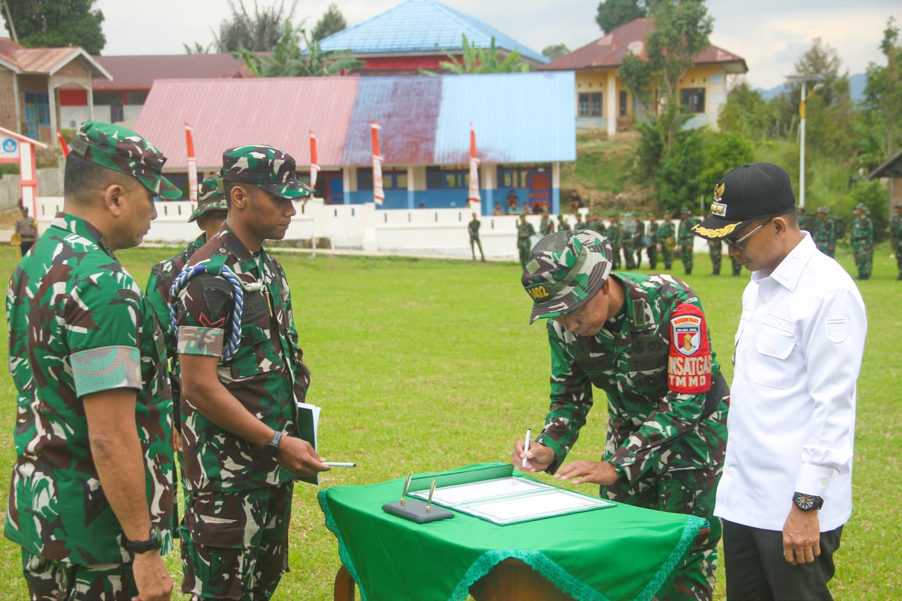 Polewali Mandar – Panglima Kodam (Pangdam) XXIII/Palaka Wira Mayjen TNI Jonathan Binsar Parluhutan Sianipar menutup secara resmi pelaksanaan TNI Manunggal Membangun Desa (TMMD) ke-127 Kodim 1402/Polewali Mandar di Desa Bulo, Kecamatan Bulo, Kabupaten Polewali Mandar, Sulawesi Barat, Rabu (11/3/2026).