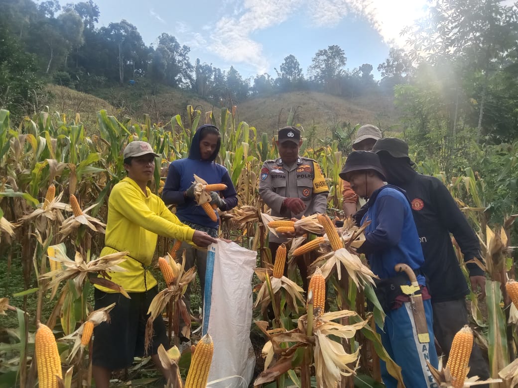 Sinergi Polisi dan Petani, Poktan Bundes Ba’ba Tapua Panen 3 Ton Jagung di Matangnga Polman