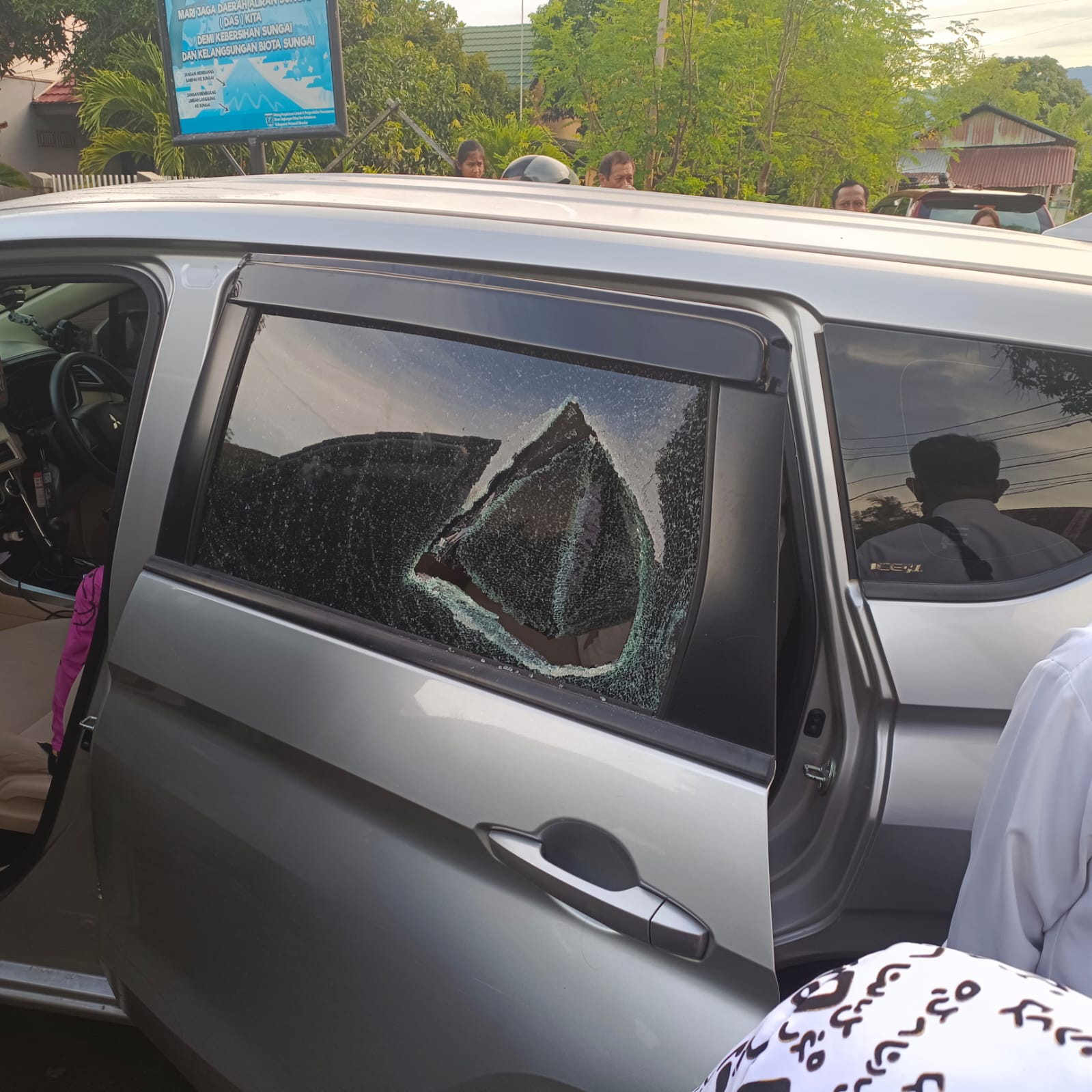 “Saat kami kembali sekitar pukul 07.15 WITA, kaca mobil sudah pecah dan tas milik istri saya yang disimpan di dalam mobil hilang,” ujar MLS.